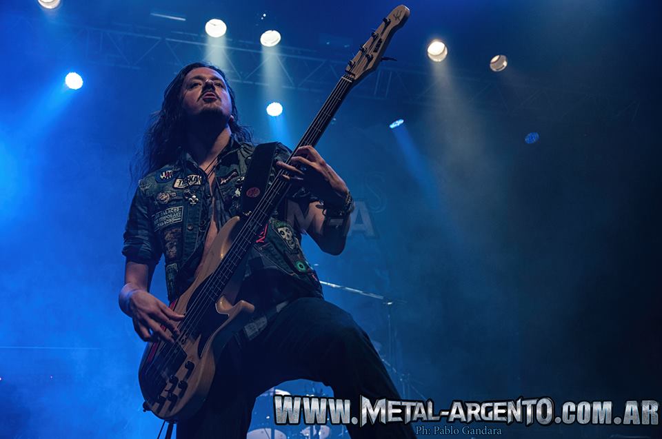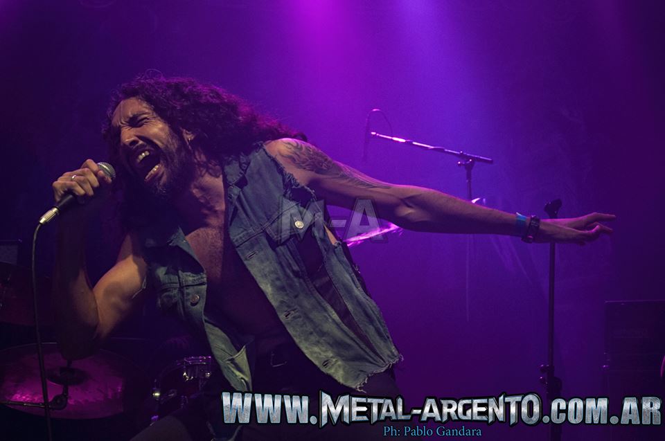 Tras un breve interludio que se “amenizo” con una selección musical horrenda de parte del DJ de turno, subió al escenario Conxuro de Mar del Plata. Ellos se definen a sí mismos como hard rock celta (la presencia de violín, flauta y teclado hace pensar inmediatamente en folk) pero las influencias de heavy metal clásico y power se hicieron evidentes desde el primer momento. Al principio el sonido fue flojísimo, al menos desde mi ubicación. La guitarra casi inaudible, el bajo tapando gran parte de la instrumentación, el micrófono dando subidas y bajadas de volumen. Con grandes cuotas de actitud y un sonido que se fue acomodando y les permitió mostrar lo mejor de sí, los marplatenses se ganaron a la gente a base de una presencia escénica laburada y unos covers que compraron a más de uno, particularmente la intro de Game of Thrones en una batalla de violín y viola muy memorable.