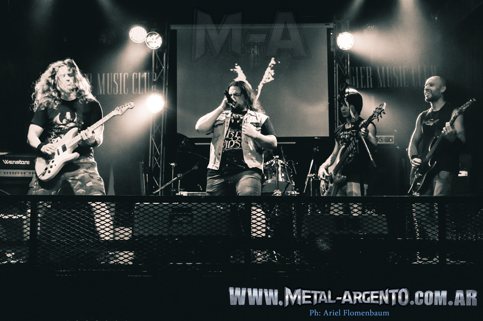 Era hora del plato fuerte de la noche. El telón del escenario se levantó y esta vez podíamos ver a la banda con dos guitarras, una a cargo de Pablo Soler y la otra por Matias Munighini (Tren Loco y Mastifal), en el bajo Gustavo Zavala (Tren Loco), y en la batería Alan Fritzler (Watchmen). Nos anunciaron que esa noche Javier Barrozo no iba a poder asistir, pero que en su lugar llamaron a varios amigos para que entonen los clásicos de la doncella junto con ellos.
