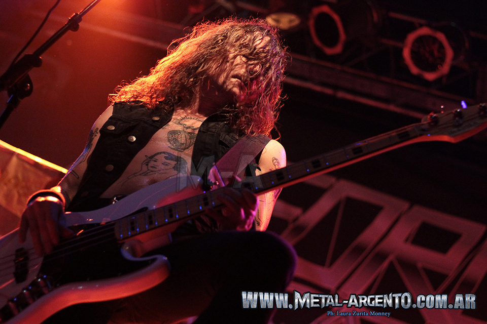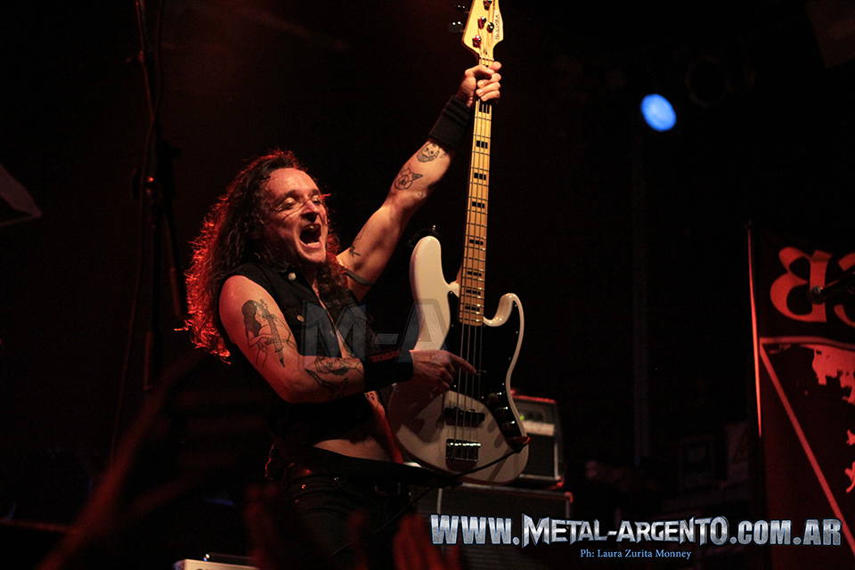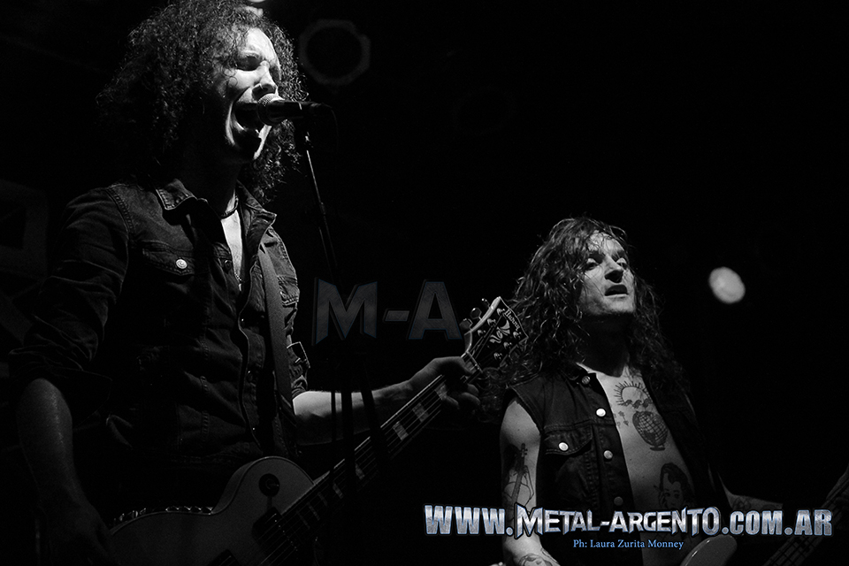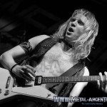 Enseguida subió al escenario Raptore, unos muchachos picantes provenientes de La Plata a los cuales hace rato vengo siguiendo. Su disco esta pronto a salir y fue una oportunidad excelente para que saquen chispas en territorio desconocido. Desde el principio salieron a comerse el escenario con Rage N’ Fever (tema que da título a su muy recomendable demo) y su riff infeccioso. Se despacharon con un set list ajustado y preciso plagado de temazos de pura cepa como Night on Fire, Back in the Oven (si te gusta Accept, ese estribillo te va a ganar el corazón) y la siempre hitera My Own Grave. Definitivamente Raptore se pudo mostrar en su mejor forma, correteando por el escenario con Nico Cattoni (voz y guitarra) levantando al público y Michel (bajo) con una impronta que le rinde tributo al mismísimo dios del trueno Gene Simmons. Muchos aplausos para estos muchachos que de a poco se van haciendo notar en el país.