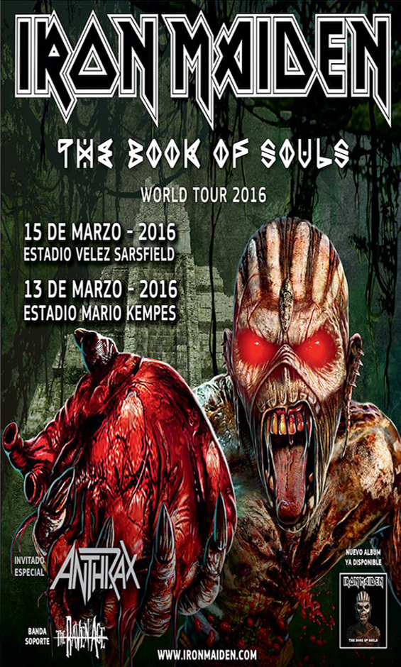 La última visita de la Doncella de Hierro al país, la décima desde aquél legendario primer show en 1992, contaba con una presentación previa en la Provincia de Córdoba; algo sin precedentes teniendo en cuenta el paso por otra localidad que no fuera Buenos Aires. Al igual que en el debut en el Estadio Mario Alberto Kempes, The Raven Age -fundada en 2009 por George Harris, hijo de Steve- es la banda encargada de entretener al público presente en Vélez. Sin embargo, solo logra satisfacer desde lo visual por el mero hecho de estar sobre el escenario y pierde complacencia por ignota, incapaz de saciar a los presentes. Contrario es el caso de Anthrax que toma las tablas por asalto para presentar algunos cortes recientes del aclamado For All Kings (2016) y repasar los clásicos que hace décadas lo colocan entre los cuatro grandes del Thrash Metal junto a Metallica, Megadeth y Slayer. Tras un set corto para los más fanáticos pero adecuado dado el rol que vinieron a cumplir, el escenario comienza a ser acondicionado nuevamente y la ansiedad recrudece en un estadio casi lleno.