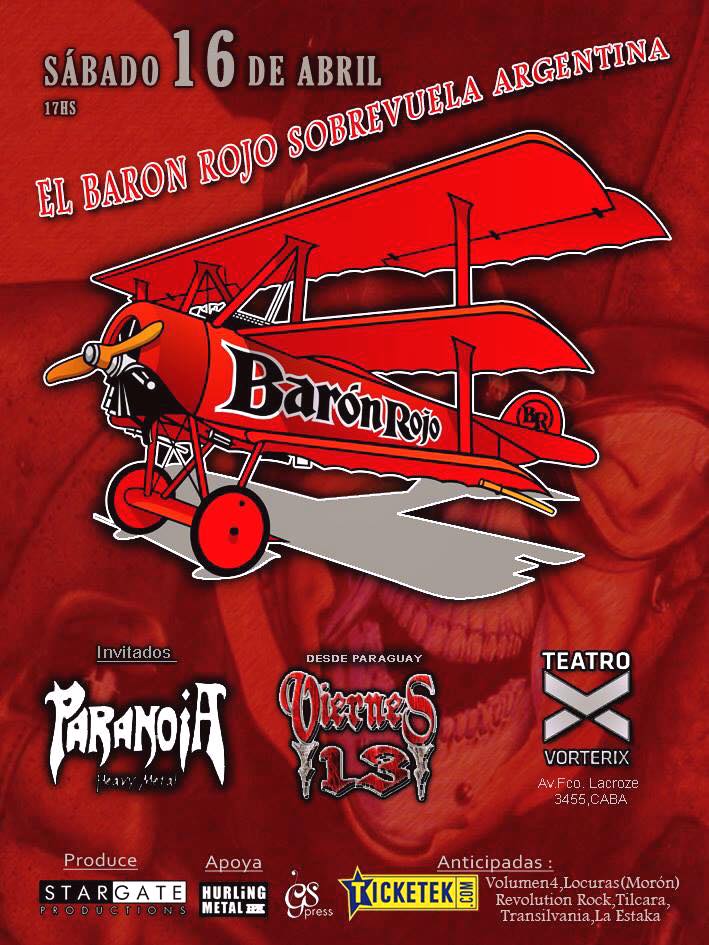 El Baron sobrevoló Buenos Aires una vez más, en esta oportunidad el marco fue el teatro Vorterix. Colegiales se tiño de rojo para una noche llena de riffs y por sobre todo, nostalgia. Es que los españoles no vinieron solos, los actos de apertura, muy acorde a la fecha, fueron grandes bandas con trayectorias que se remontan varios años atrás.