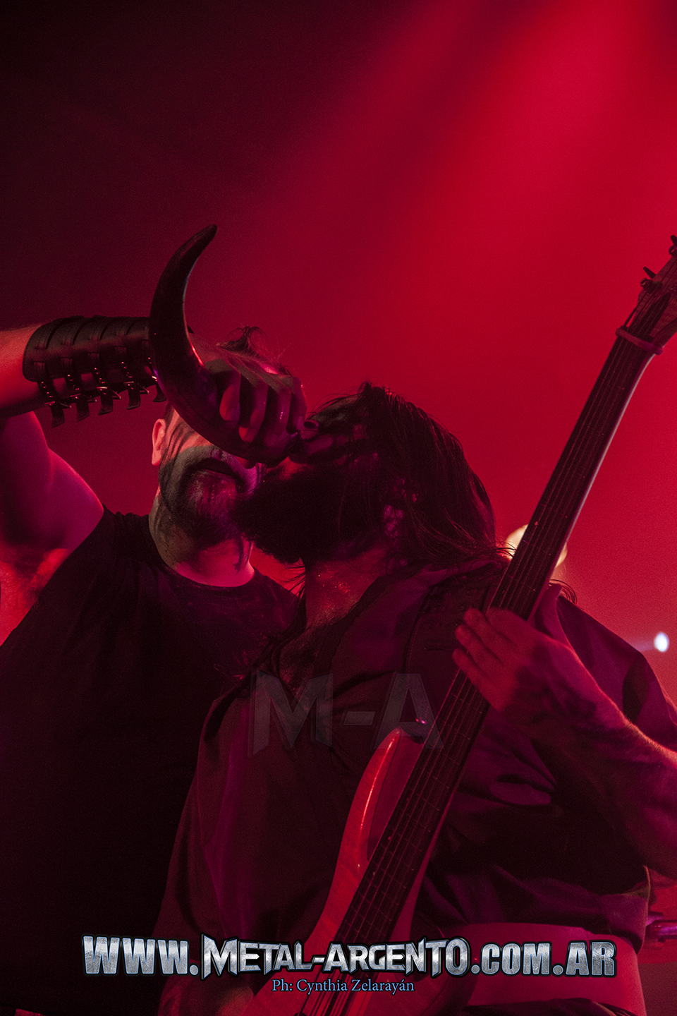 Las banda que inició la jornada alrededor de las 19 hs fue Naufragant, aunque solo llegamos a presenciar los últimos acordes. Luego se presentó Vorgrum, con una fuerte propuesta visual y sonora. Realizan un folk/pagan metal, con fuertes ingredientes black. Blast beats, tremolos y corpse paint conviven con melodías fiesteras que despiertan las rondas entre el público. Su set estuvo conformado mayormente por temas de su álbum de estudio Last Domain (2015).
