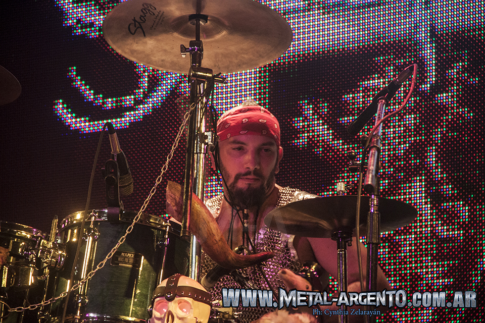 La segunda parte del espectáculo comenzó con el tema que lleva el nombre del grupo, de su segundo disco Beheading the liars (2008). En esta sección ejecutaron principalmente covers como “Under Jolly Roger” de Running Wild, y temas de su último disco Into The Battleground (2013) como “On the trail of David Ross” o “The Rabbit who wanted to be a Wolf”, por primera vez tocada en vivo. El invitado especial fue Javier “Knario” Compiano de Plan 4, quien puso su furiosa voz a la violenta “Besieged by fire”, y luego continuó en “I’m shipping up to Boston”, cover de Dropkick Murphys, junto al guitarrista Walter Hernandez. “Loyal we stand”, y el clásico “Bagpipes of war” de The Highland way (2010). En conclusión, vivimos un intenso show de 90 minutos ante un Roxy colmado de gente que hacía años esperaba verlos en vivo nuevamente y no defraudaron. Esperamos que no vuelva a pasar tanto tiempo.