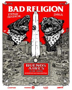 Como antesala de este nuevo show en Argentinaa, las miticas bandas Shaila y Eterna Inocencia. serán parte de la partida. Ambas bandas vienen de celebrar 30 años de carrera y cada una viene aceitada con giras barriales federales para llevar su mensaje a cada rincón del país. Por otra parte, la artista marplatense Villy es la encargada del armado del flyer local.