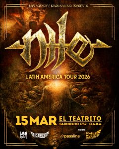 Nile nuevamente realizará una gira a través de Latinoamérica, presentando su más reciente producción en estudio titulada The Underworld Awaits us All (2024). La parada en la Argentina es el 15 de marzo en en el El Teatrito (Sarmiento 1752 – CABA). Las bandas que abrirán el show serán los locales Exterminio, Manifiesto, Morferus y Lesa Humanidad.